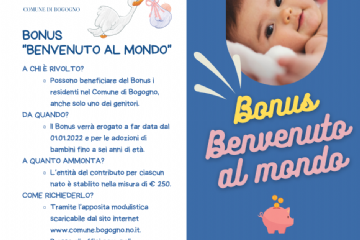 “Benvenuto al Mondo” a favore delle famiglie residenti nel proprio territorio con l'obiettivo di concorrere alle spese legate alle nuove nascite.