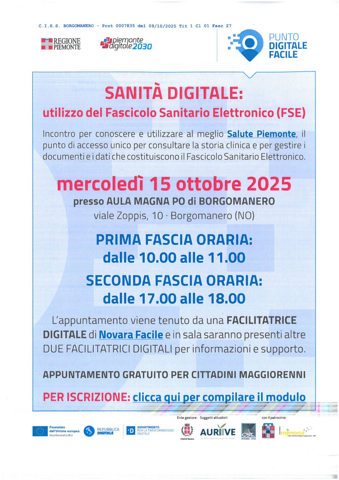 Fascicolo Sanitario Elettronico: Appuntamento Informativo A Borgomanero
