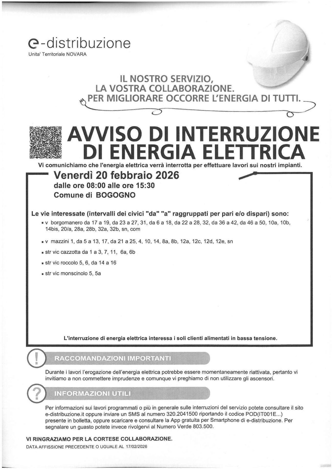 In allegato  Avviso di interruzione di energia elettrica e-distribuzione