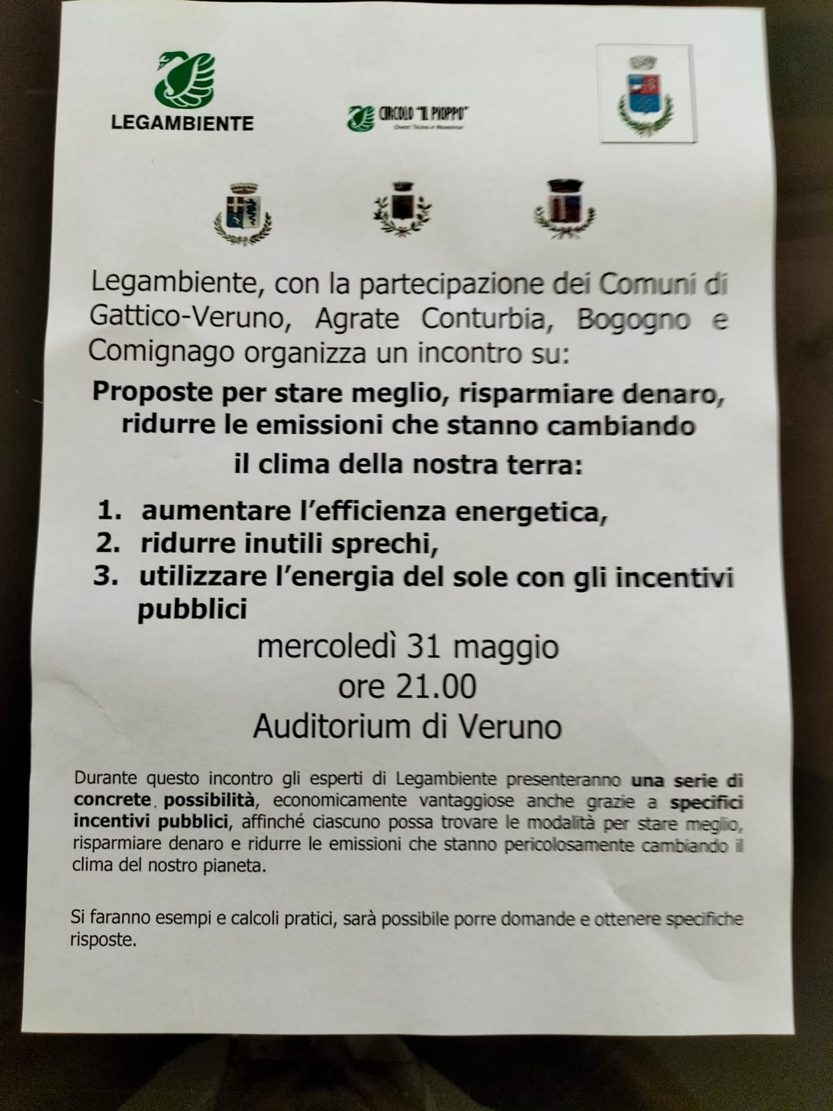 incontro mercoledì 31 maggio ore 21:00 Auditorium di Veruno