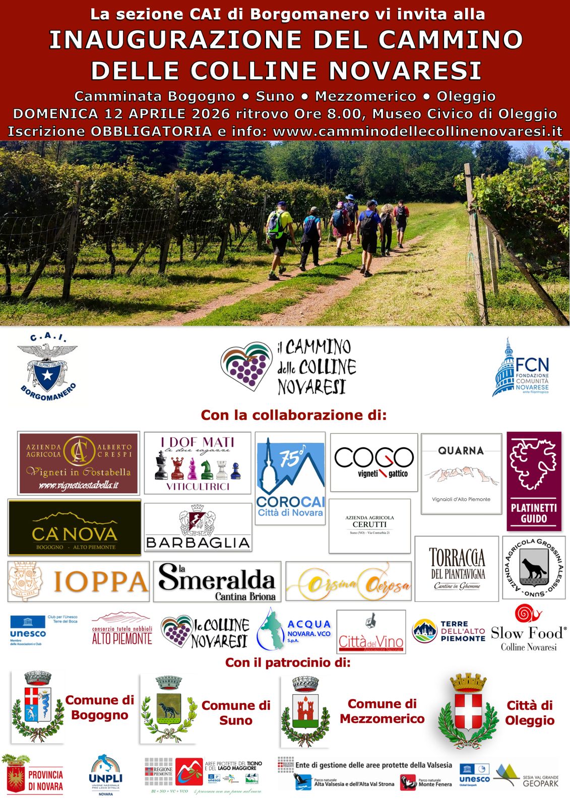 Alle ore 9.00 presso la piazza Montessori ci sarà l'inaugurazione del Cammino delle Colline Novaresi da parte del CAI di Borgomanero.