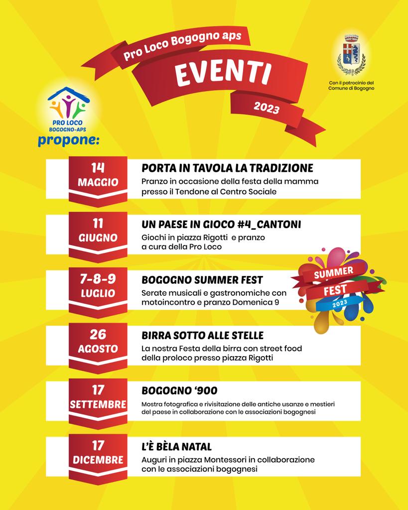 "Programmazione anno 2023...per info e dettagli delle manifestazioni seguire la pagina facebook Pro Loco Bogogno "