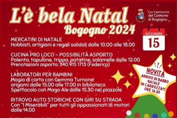 Domenica, 15 dicembre 2024, presso piazza Rigotti, festa di Natale organizzata dalle associazioni del paese, con il patrocinio del Comune di Bogogno. - Dalle 10 alle 18, mercatini di Natale -...