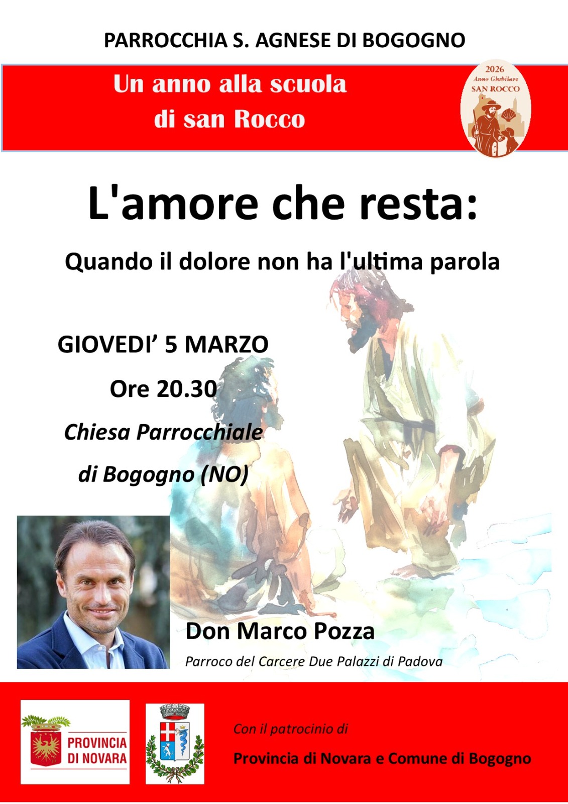 La Parrocchia di Bogogno, con il patrocinio del Comune di Bogogno e della Provincia di Novara, organizza un incontro con Don Marco Pozza.
