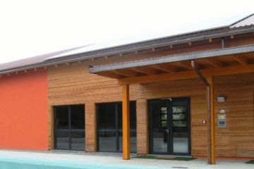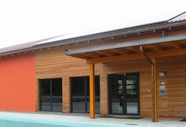 struttura interamente realizzata in tecnologie ad alta efficienza energetica con uso di fonti di energia rinnovabili, su un unico piano, dotata di servizi per attività sportive scolastiche ed extrascolastiche.